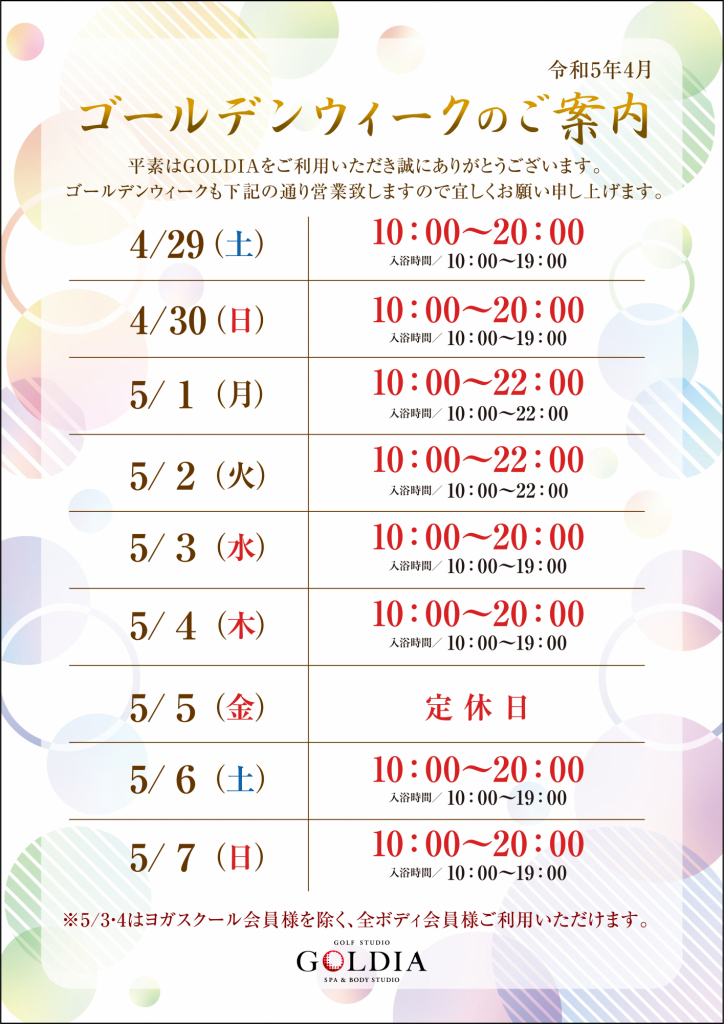 ゴールデンウィークのご案内