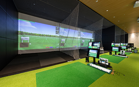 全6打席にDITECT社製のスイング分析機Golf Swing Better Santanaと最新の弾道測定器Swing Better Prizm-PODを設置。また、すべての弾道をスクリーンに投影しコースさながらの臨場感溢れる弾道を再現いたします!