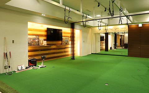 インドアとは思えないコースさながらの大型のグリーン練習場。