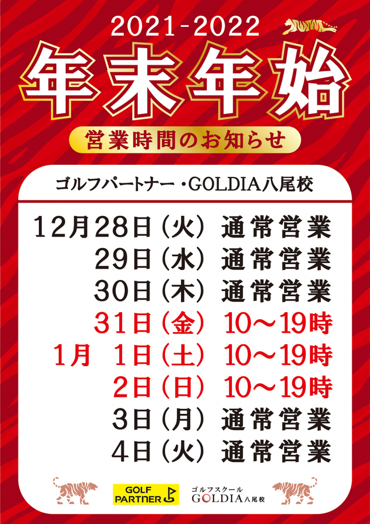 年末年始営業時間のお知らせ